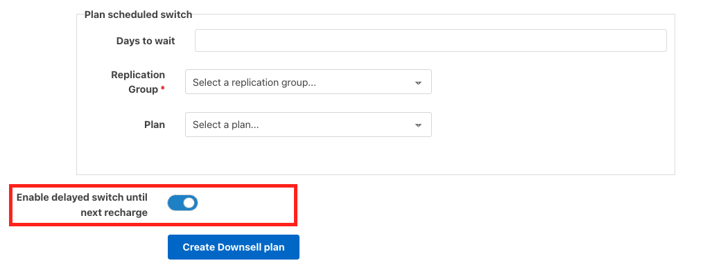 - Delay Switch Until Next Recharge Option: You can now delay switching members’ plans until the next recharge date. Toggle this feature on or off when editing or creating a downsell offer.