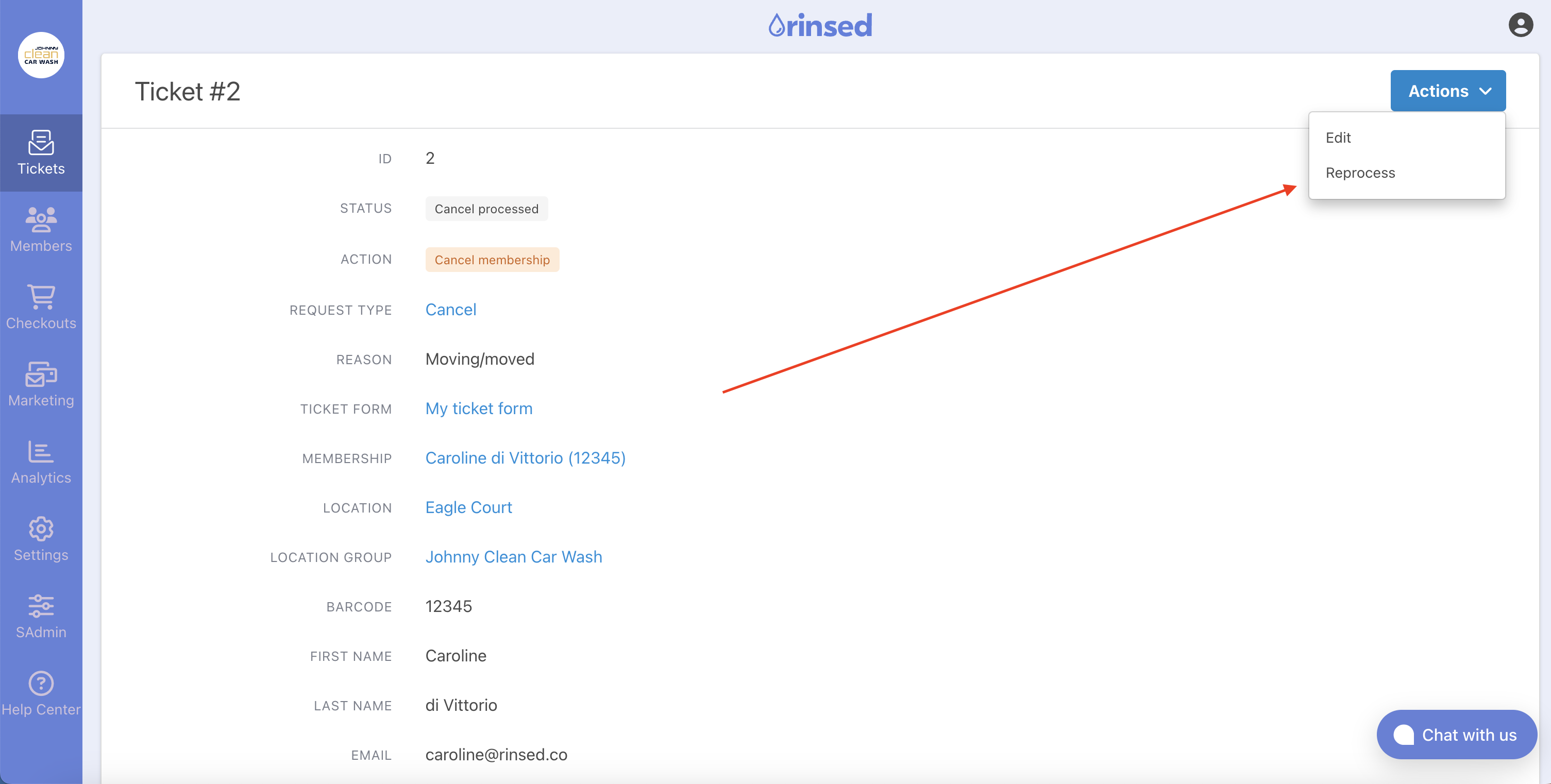 - Reprocess Ticket Capability: A new button on the ticket page lets you reprocess tickets. For example, if a ticket was associated with the wrong membership, you can update the barcode/membership, reassign the ticket to the correct customer, and reprocess it for the correct membership.