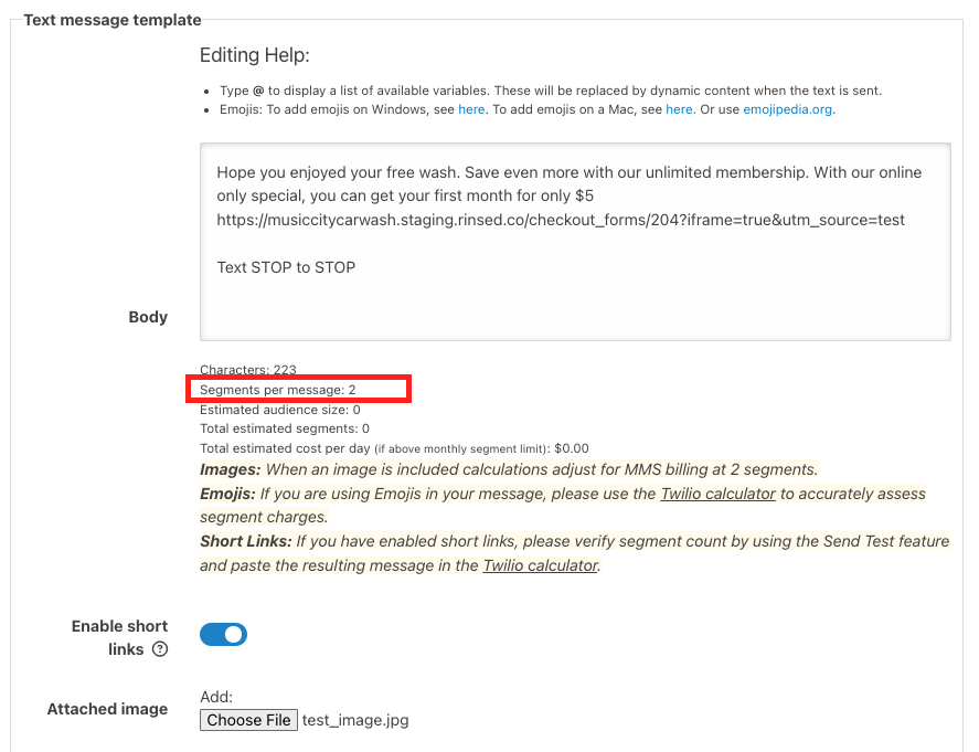 - Segment counter update: The segment counter now recognizes when an image is attached to a text message template and updates itself accordingly.