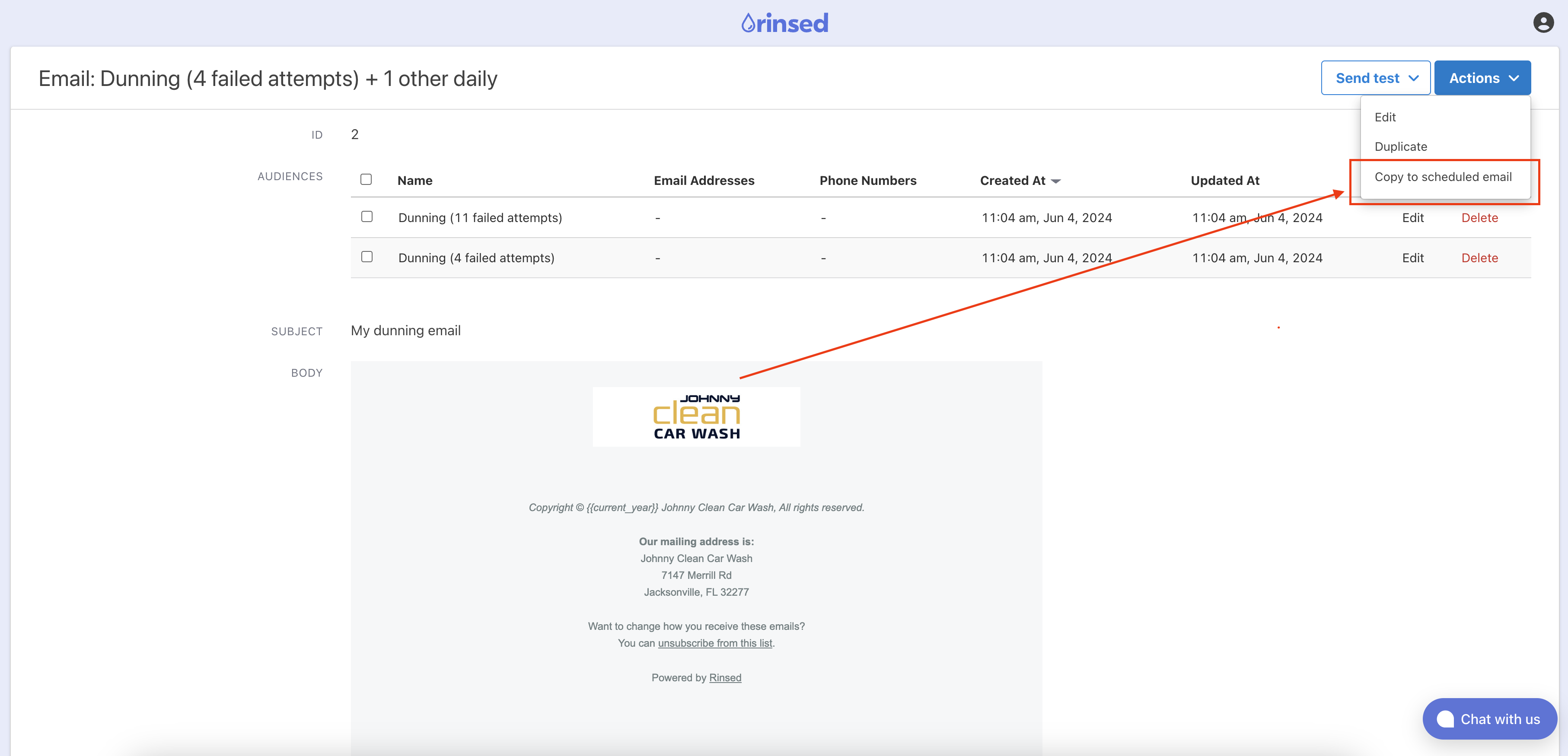 - Copy a Campaign Message to a Scheduled Message: You can now copy a campaign email to a scheduled email, duplicating the campaign message as a scheduled message. To use this feature, navigate to the campaign message you want to copy, click on "Actions," and select "Copy to Scheduled Message." You will then be redirected to the newly created scheduled message.