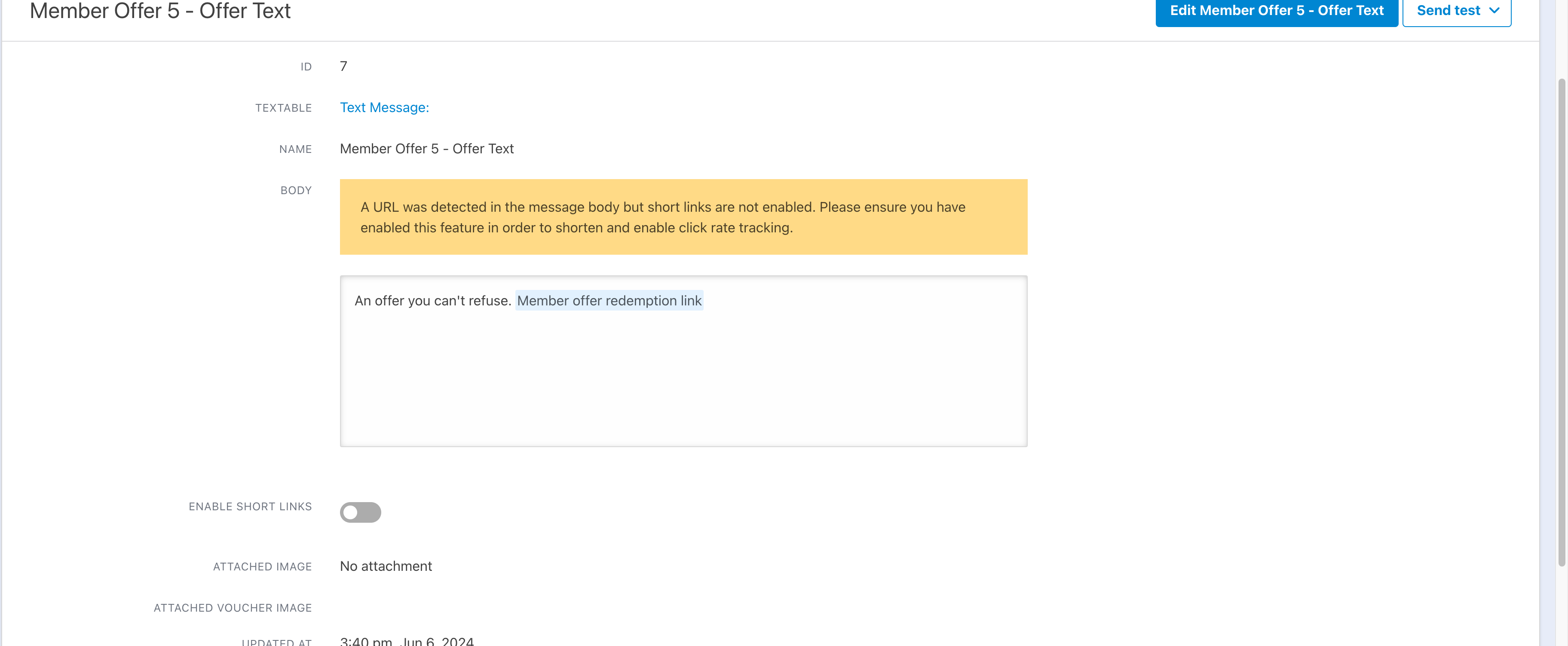 - Text Message Template Updates: New error messages have been put in place to prevent saving if short links are enabled without URLs present or to warn if URLs are present, but short links are off. Having short links enabled allows us to better track links as well as makes it less likely to incur additional charges.